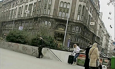 A sexy German babe with monstrous boobs gets fucked on the stairs