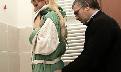 Randy female daddy has her tight labia waxed and her face creamed