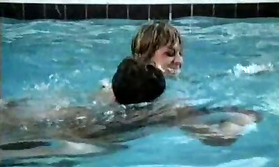 Pool party group sex among steamy babes and horny guys in vintage clip