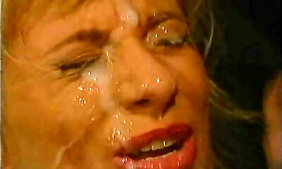 Antique blonde takes a messy double facial